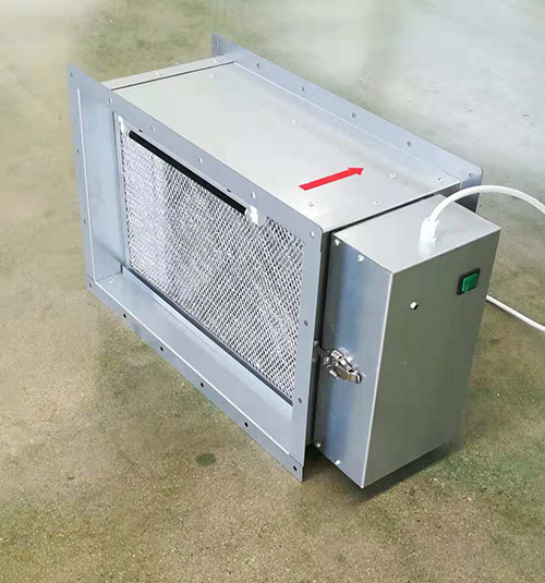 車間異味、粉塵的治理是困擾人們的難題。車間用復合空氣凈化器能夠能有效去除工廠、車間產生的粉塵、臭味、異味,同時能夠殺菌消毒,凈化車間空氣效果良好。 復合空氣凈化器(靜電+光觸媒),是利用靜電凈化模塊使送風中的塵埃顆粒物荷電,改變運動方向后捕獲,在靜電電場正負兩極板施加高壓,空氣中的塵埃顆粒物通過凈化模塊時帶電由于庫倫力的作用使得帶電電荷全部集附在靜電集塵區上;通電后集塵器產生強力高壓,放電級放電將空氣中的細菌、病毒微生物細胞壁擊穿,從而瞬間滅殺。光觸媒過濾段采用的是國內優質的光觸媒或其他過濾材料,過濾材料有很強的光催化效果,可對通過的異味、惡臭氣體分子有效過濾,凈化室內空氣。